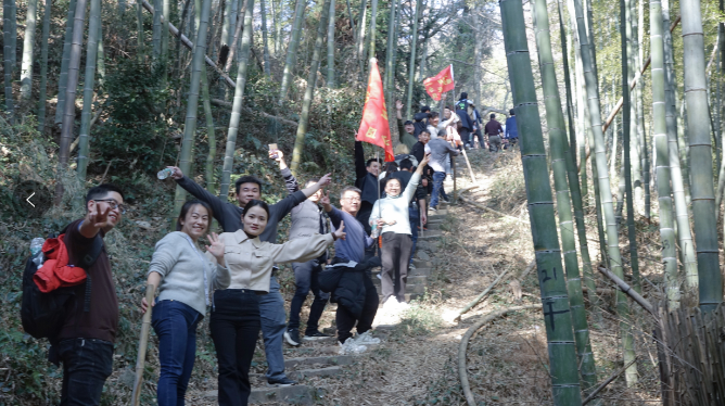 在登山途中,時有濕滑泥濘、石塊松動的路段,彼此的一句句提醒注意、一次次伸出援手、一串串歡聲笑語是林寒澗肅的冬日莫干山里最溫暖的力量。大家在登山的過程中,不畏艱險、腳踏實地,走好每一步;齊心協力、攜手并進,開拓新的征程!