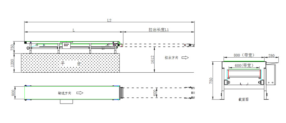 K5-A1裝貨-抽屜式皮帶輸送機規格表 , 單位:mm
