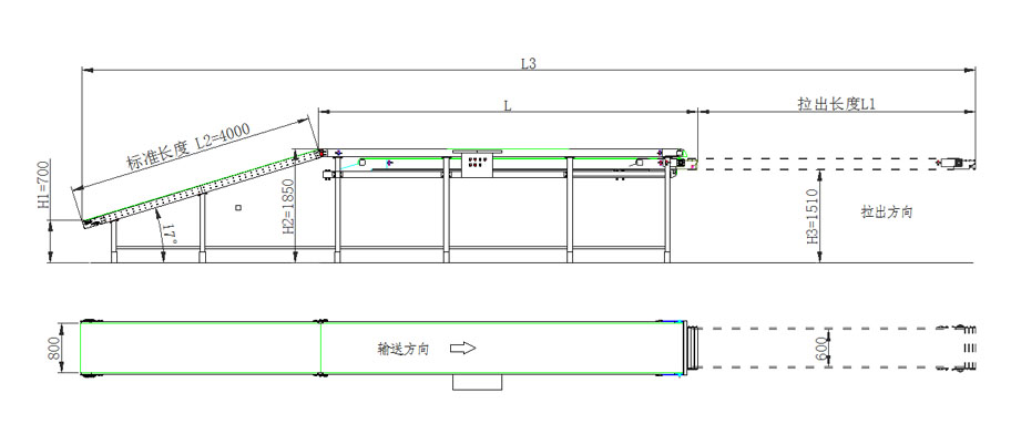 2、 抽屜輸送機可以在長度方向上自由推拉,根據裝貨的需求,人力拉動,自動控制抽屜輸送機在車內的長度,減免了人工往返搬運物料的距離,縮短裝卸貨的時間。