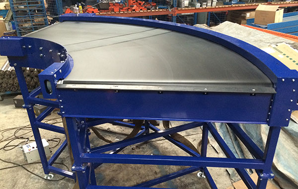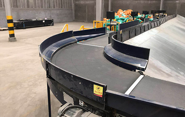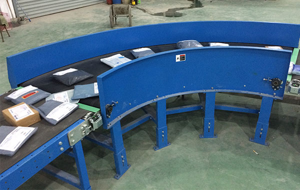 2、 因設備場地的局限性,在許多情況下,輸送設備需要實現轉彎輸送,平穩輸送情況,選擇轉彎皮帶輸送機是最好的選擇。它可以幫您實現90°,180°,S型錯位輸送。