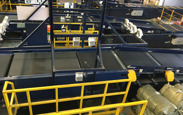 卸貨時,單件擺放,不能堆疊,不能左右并排,單件間隔≥10mm,一面掃面單必須向上,面單不能褶皺;五面掃面單不得向下緊貼輸送帶,面單不能褶皺