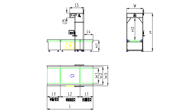 拉距段、稱重段、補碼段輸送機由光電控制,單件輸送、掃碼、稱重、測體積,待數(shù)據(jù)測出回傳后,第二件才啟動輸送