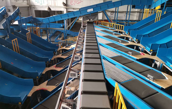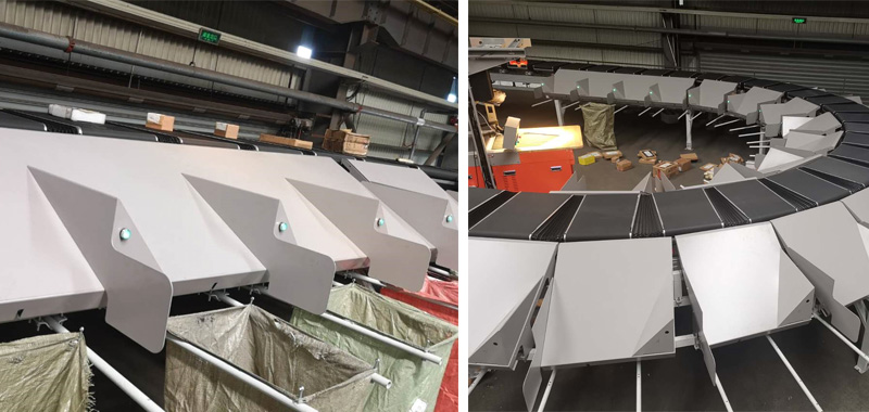 5)小車與小車之間附有蓋板,在運行中可保持封閉承載單元之間的空隙,防止快件卡夾;